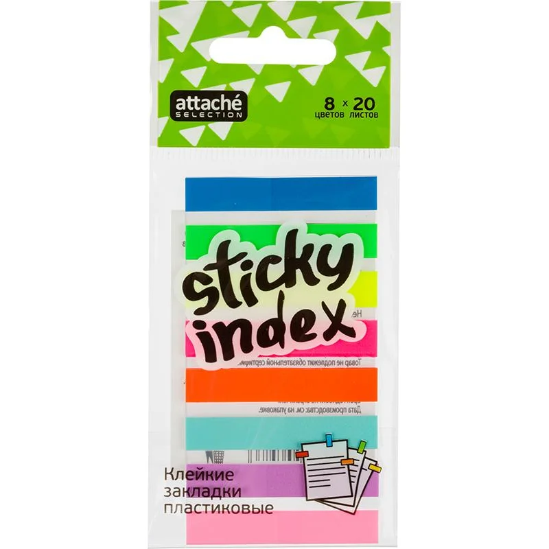 Клейкие закладки пластиковые Attache Selection 8х45мм, 8цветов по 20 листов