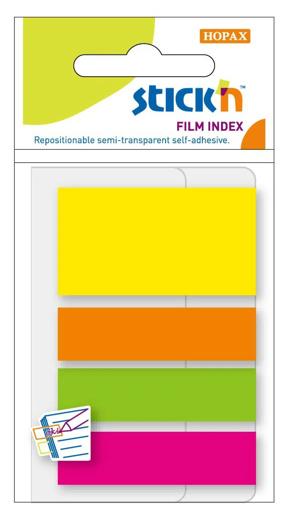 Клейкие закладки пластиковые Stick'n 45х12мм, 45х25мм, 4цвета по 25 листов, неоновые