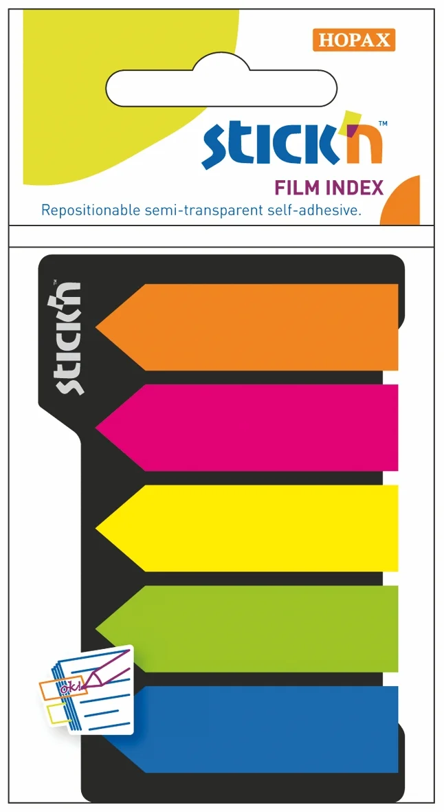 Клейкие закладки пластиковые Stick'n Стрелка, 45х12мм, 5цветов по 25 листов, неоновые