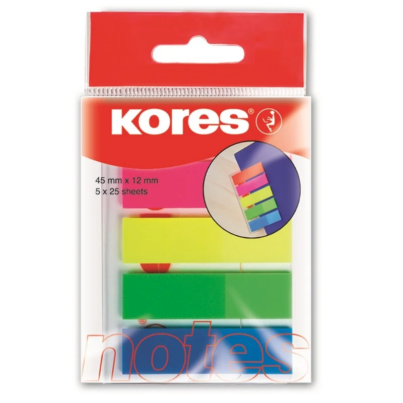 Клейкие закладки пластиковые Kores Film 45х12мм, 5цветов по 25 листов, в диспенсере