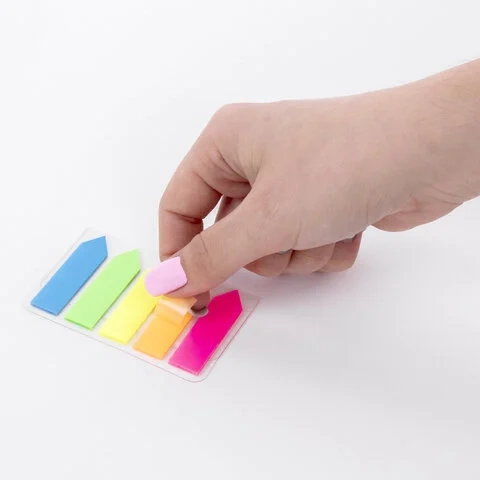 Клейкие закладки пластиковые Staff Стрелки 5 цветов х 20 листов, в пластиковой книжке
