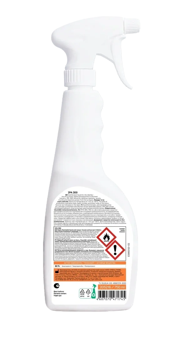 Дезинфицирующее средство Klinin Ipa 300 750мл, на основе изопропанола, триггер