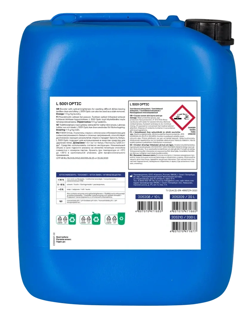 Усилитель стирки Klinin L5001 Optic 20л, для белого белья