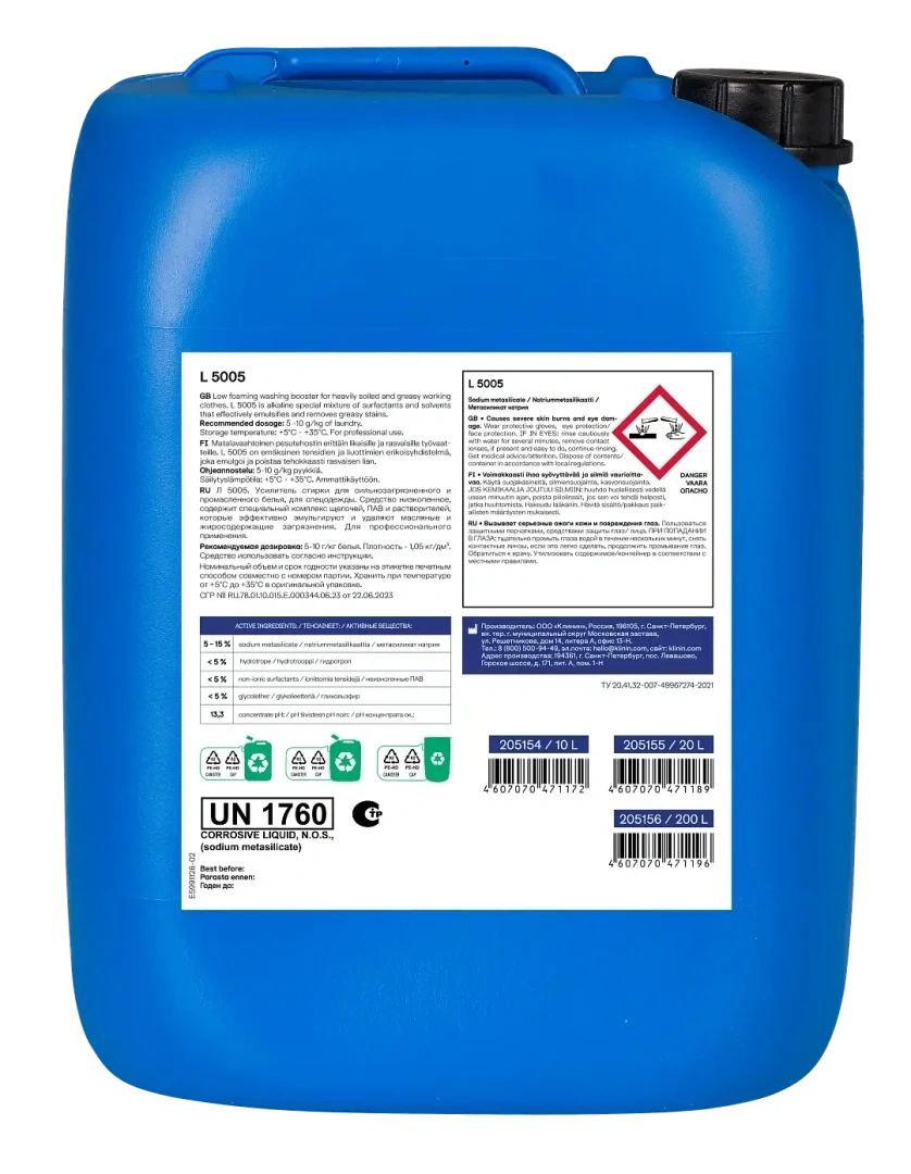 Усилитель стирки Klinin L5005 20л, для особо сильных загрязнений
