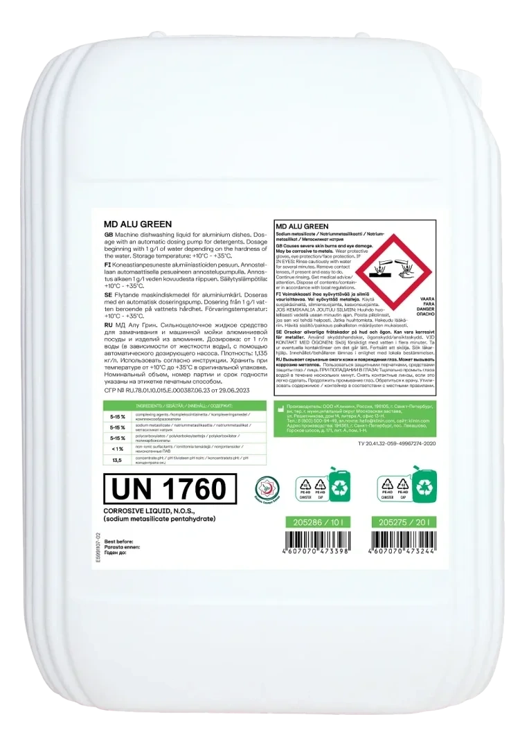 Гель для посудомоечной машины Klinin MD Alu Greeen 10л, для алюминиевой посуды
