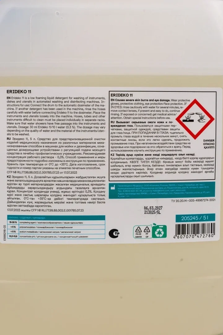 Дезинфицирующее средство Klinin Erideco 11 5л, для предстерилизационной очистки изделий медицинского назначения