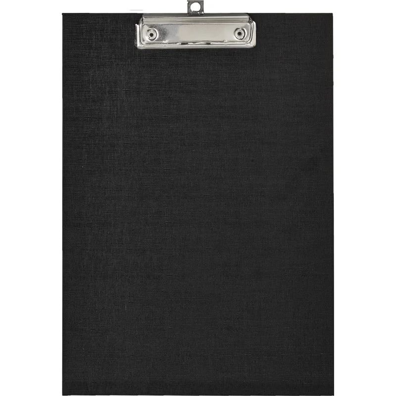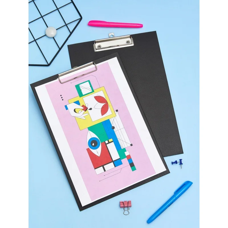 Планшет формата А4 (226×316 мм) изготовлен из плотного картона, сверху покрыт ПВХ черного цвета.