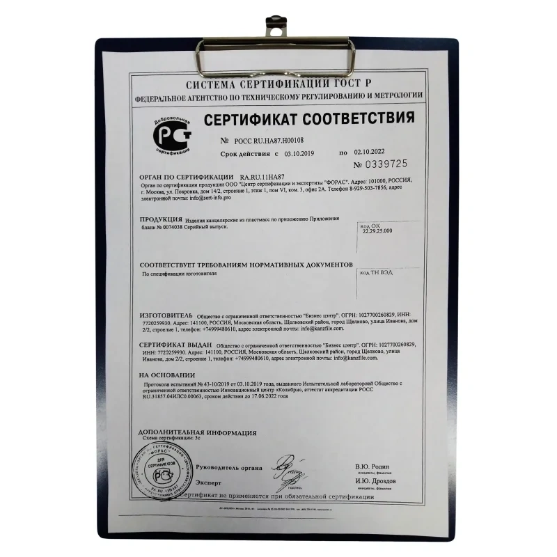 | Материал папки | пластик |