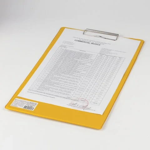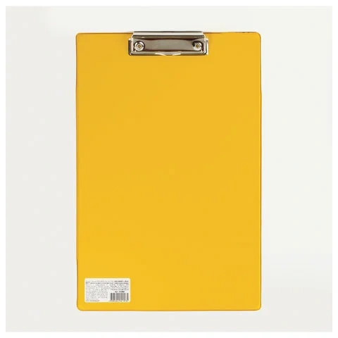 Доска-планшет формата А4 с верхним прижимом без крышки фиксирует до 90 листов. Изготовлена из плотного картона толщиной 2 мм с покрытием из износоустойчивого ПВХ, что позволяет комфортно делать записи на весу, а металлический прижим обеспечивает плотное прилегание документов.