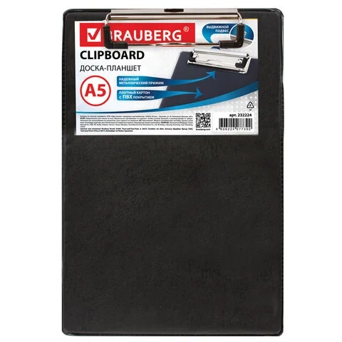 Клипборд без крышки Brauberg Number One черный, А5, 232224
