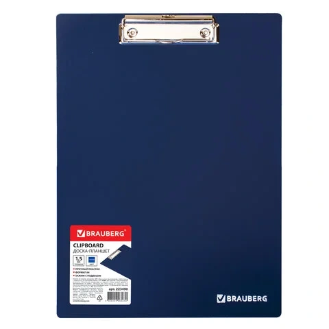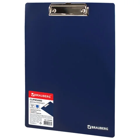 Клипборд без крышки Brauberg Contract синий, А4, 223490