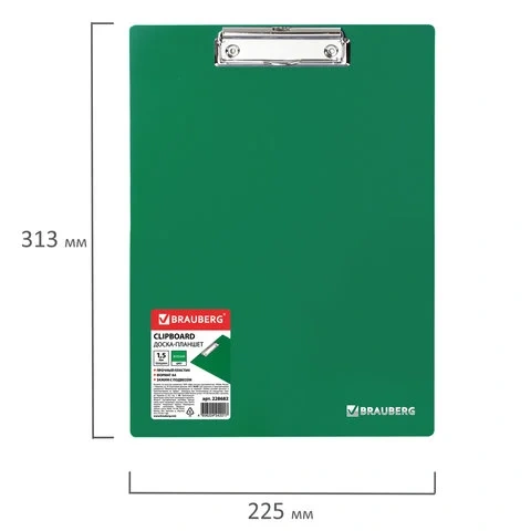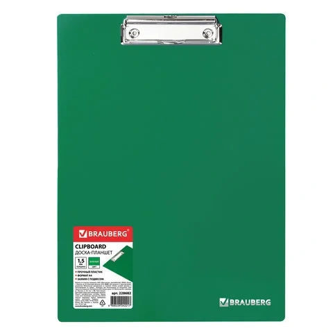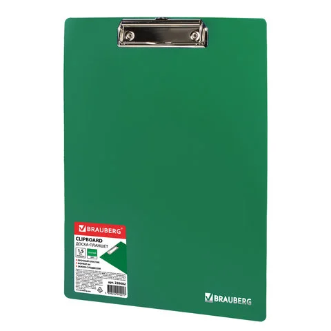Клипборд без крышки Brauberg Number One зеленый, А4, 232222
