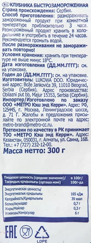 Свежая замороженная клубника METRO Chef поможет создать настоящий кулинарный шедевр. Благодаря особенному методу заморозки все ягоды сохранили свою структуру, форму и полезные свойства. Это идеальный продукт высокого качества, который хорошо хранится и при случае может быть использован для приготовления самых разных десертов, напитков или выпечки. После размораживания клубника сохраняет свою привлекательность, поэтому подходит для украшения тортов.