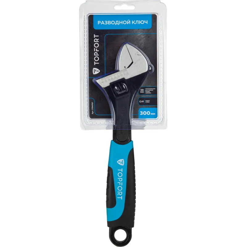 Ключ разводной 300 мм TOPFORT из углеродистой стали, пластиковая ручка