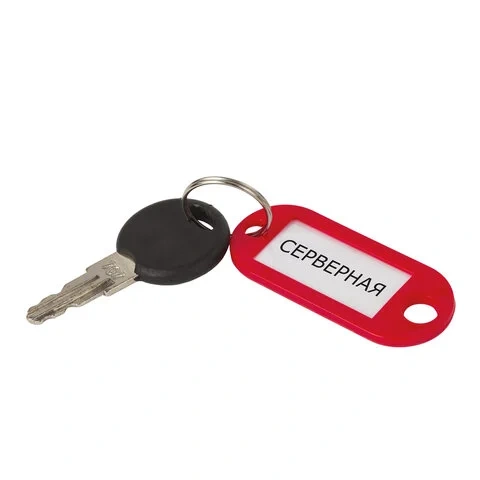 Пластиковая бирка красного цвета с металлическим колечком предназначена для ключей любого типа. Бума...