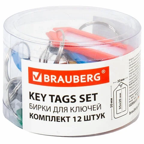 Бирки для ключей Brauberg 50 мм, 12шт, 35х20мм