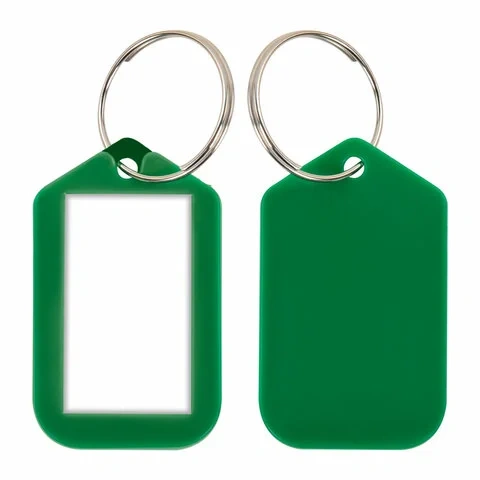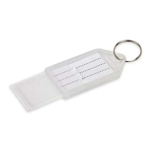 Пластиковая бирка для ключей с металлическим колечком. Бумажная этикетка защищена прозрачной пластик...