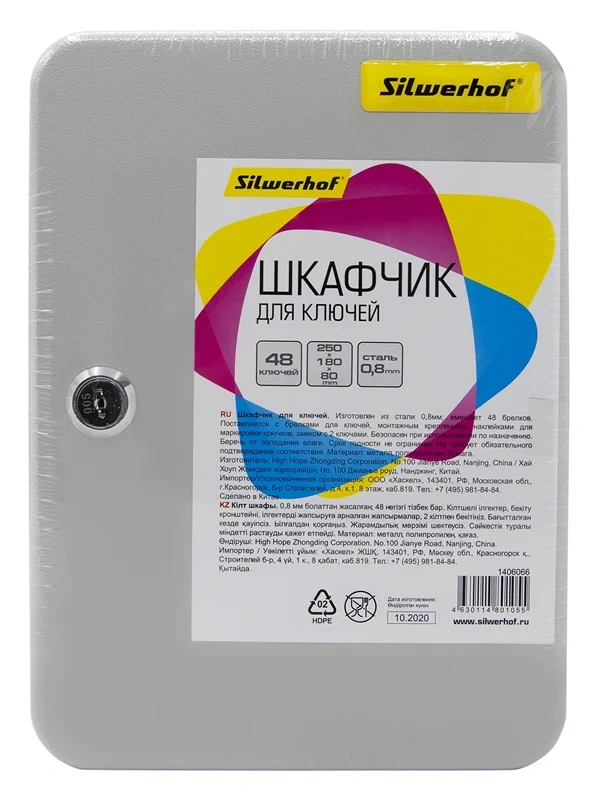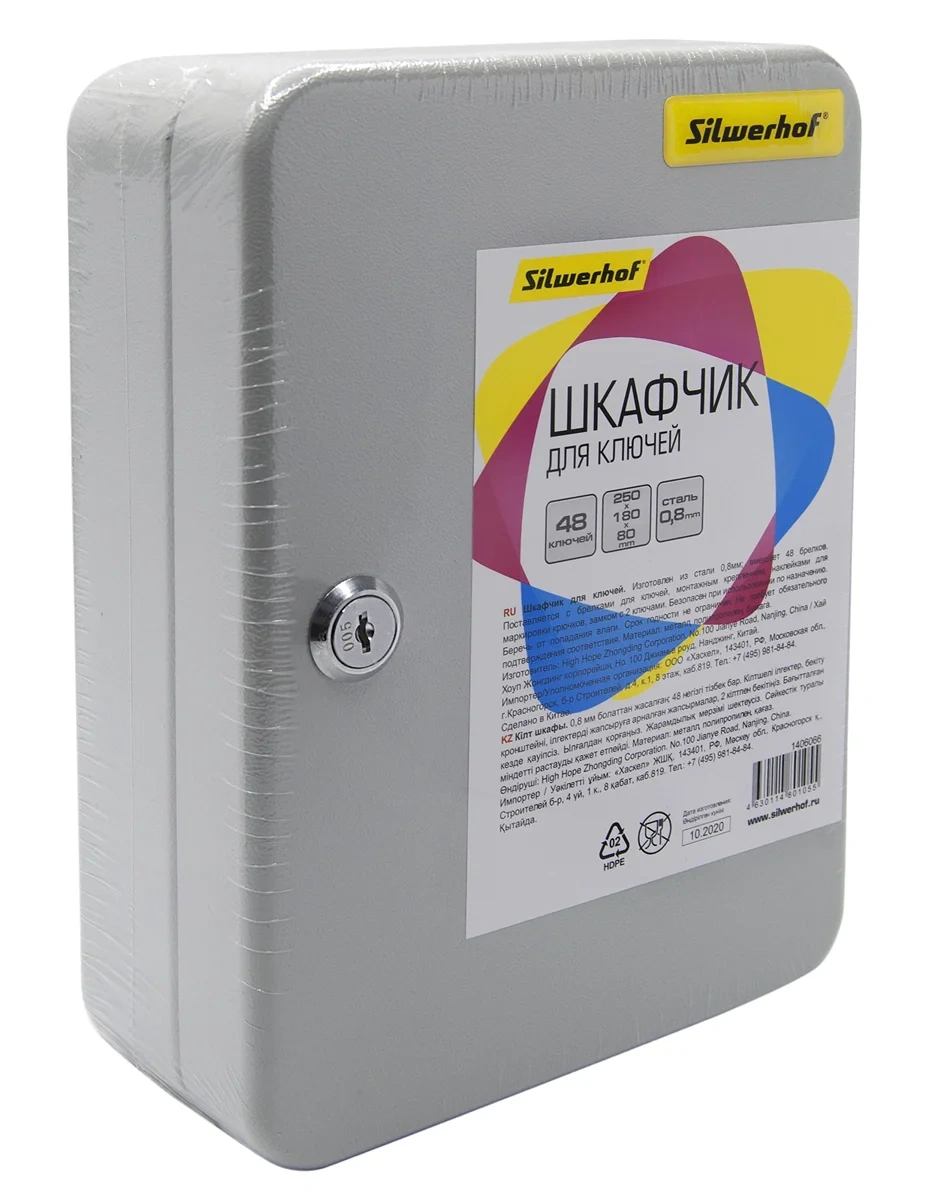 Ключница Aiko Key-20 на 20 ключей, 300*185*59мм, ключевой замок, металл, серый, с брелоками