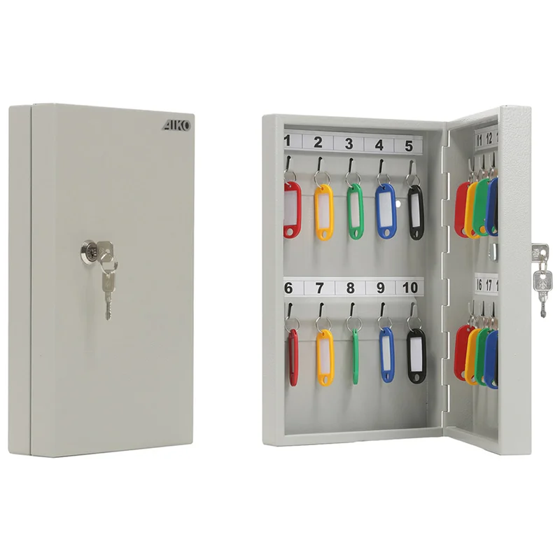 Ключница Aiko Key-20 на 20 ключей, 300*185*59мм, ключевой замок, металл, серый, с брелоками