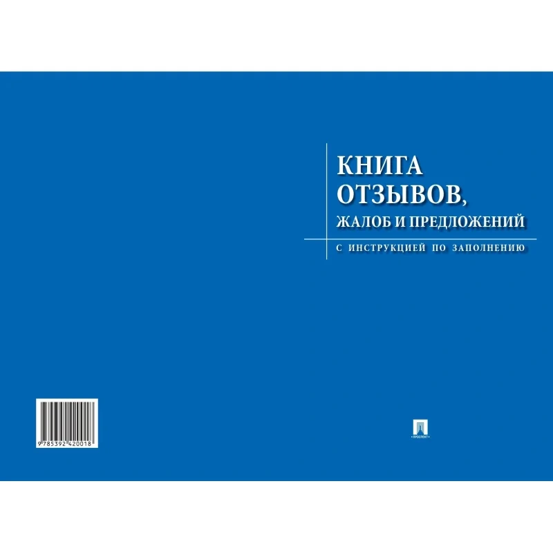 Книга отзывов, жалоб и предложений с инструкцией по заполнению. Книга «Проспект» выполнена из газетной бумаги, страницы с нумерацией.