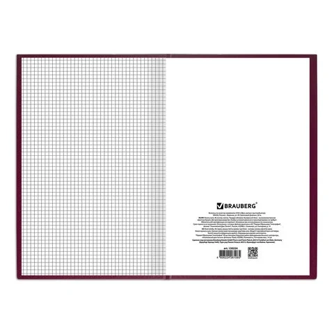 Книга учета Brauberg А4, 96 листов, в клетку, бордовая