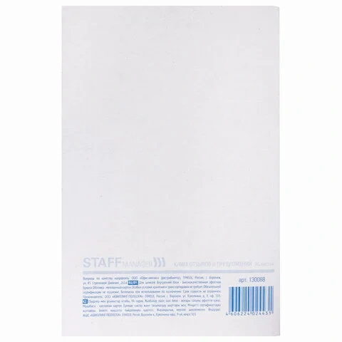 Книга учета Brauberg отзывов и предложений, А5, 96 листов, картон