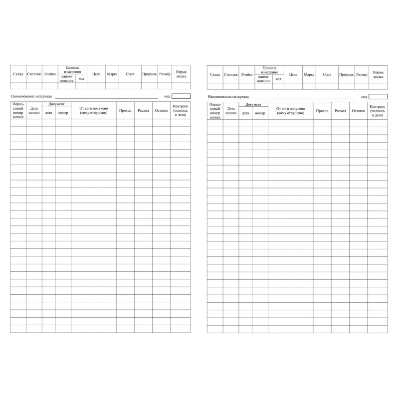 Книга учета материальных ценностей (форма 0504042) утверждена Приказом Минфина РФ от 30.03.2015 52н. Предлагаемая книга соответствует ред. Приказа Минфина России от 15.06.2020 103н. При заполнении формы следует учитывать, что на каждое наименование ТМЦ отводится отдельная страница. Учет необходимо вести по наименованиям, сортам и количеству товарно-материальных ценностей. К учету принимаются все материалы и продукция, поступившие на склад. ТМЦ, поступившие или выбывшие из организации, должны быть также отражены в книге. Важно, чтобы сведения, содержащиеся в регистре, полностью соответствовали фактическому наличию имущества в организации. Книга «Учитель-Канц» размером 210×288 мм.