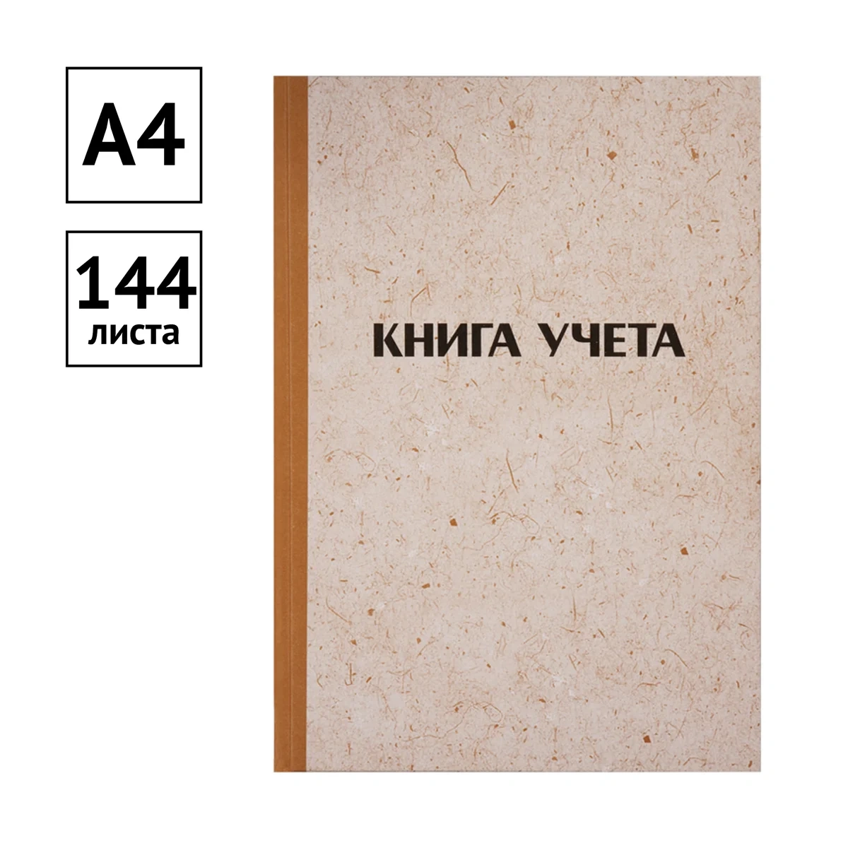 Книга учета OfficeSpace, А4, 144л., клетка, 200*290мм, твердая обложка 'крафт', блок типографский