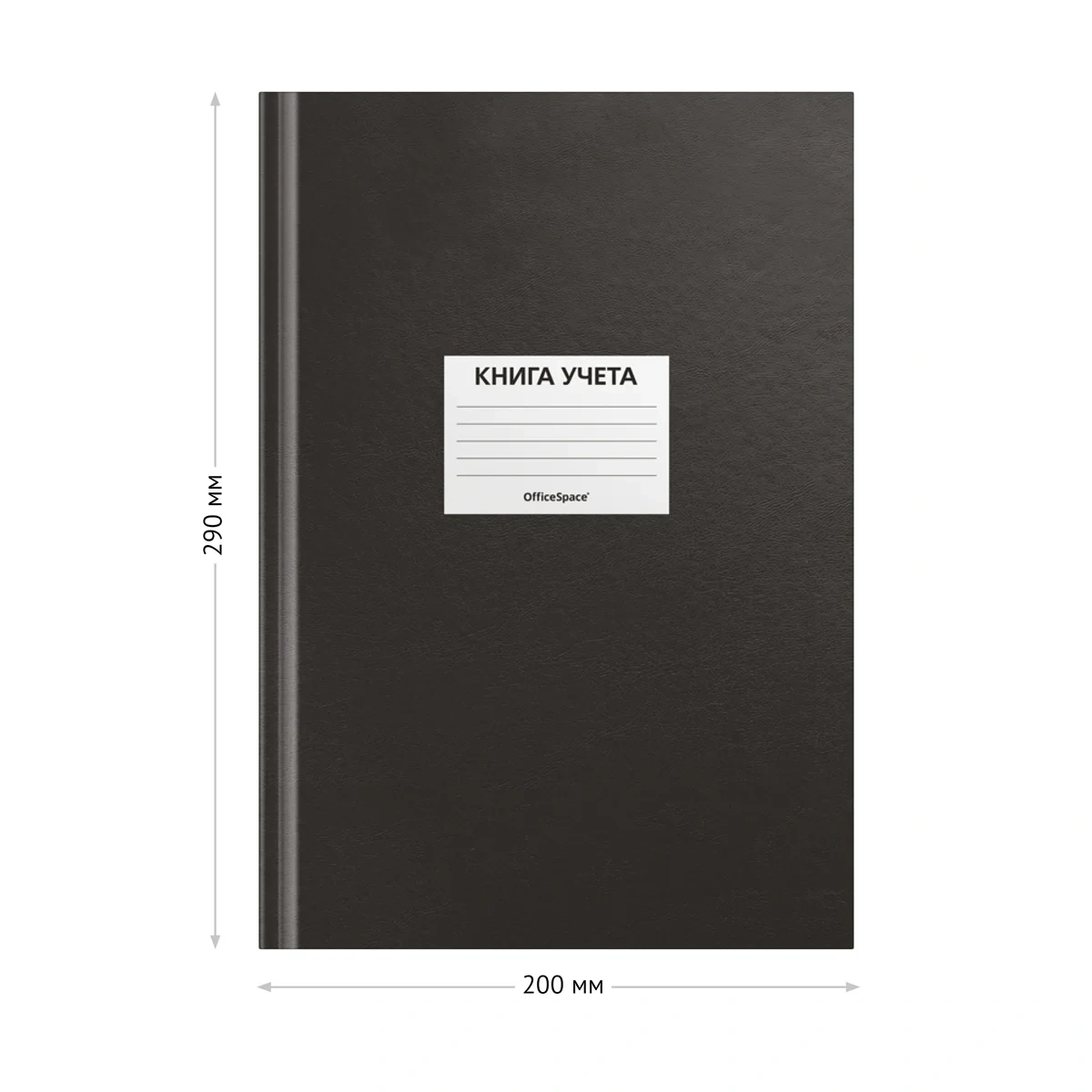 Книга учета OfficeSpace, А4, 96л., клетка, 200*290мм, бумвинил, цвет черный, блок офсетный, наклейка