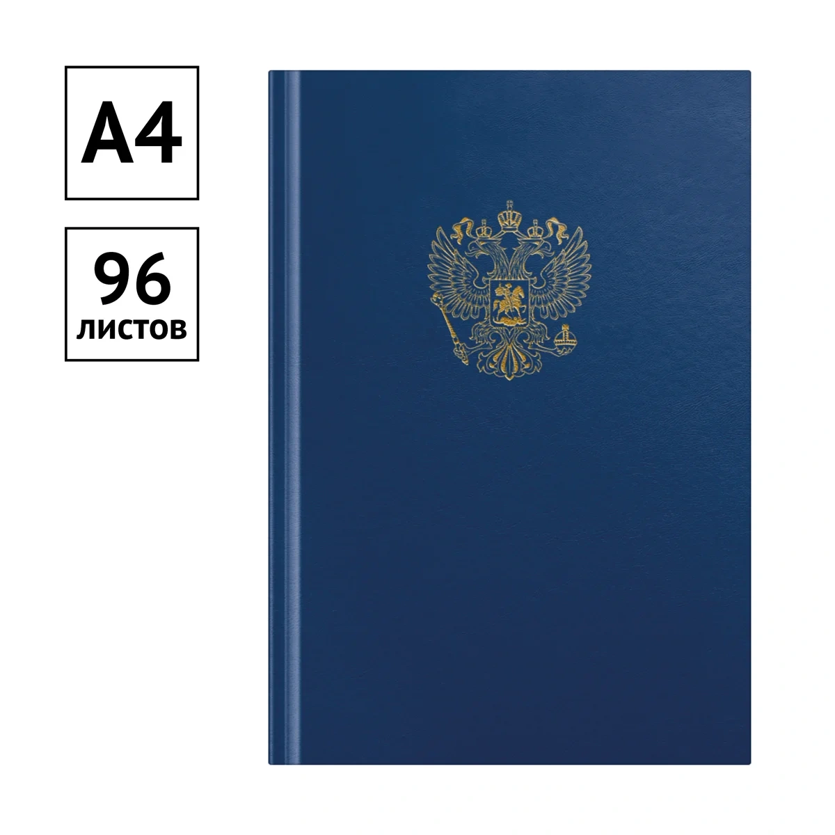 Книга учета OfficeSpace, А4, 96л., клетка, 200*290мм, бумвинил, цвет синий, блок офсетный с гербом