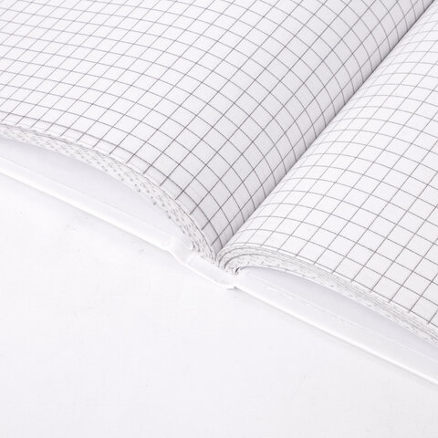 Книжная обложка с покрытием из глянцевой пленки приятна на ощупь и имеет эстетичный внешний вид. В сочетании с книжным переплетом ей свойственна хорошая износоустойчивость. Такое изделие сохраняет целостность в течение долгого времени. Внутренний блок 96 листов выполнен из офсетной белой бумаги 60 г/м2 и разлинован в клетку. Формат А4 (210х290 мм).