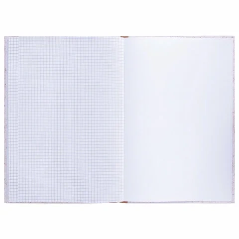 Обложка имитирует крафт-бумагу, приятна на ощупь и имеет эстетичный внешний вид. В сочетании с книжным переплетом ей свойственна хорошая износоустойчивость. Такое изделие сохраняет целостность в течение долгого времени. Внутренний блок 96 листов выполнен из офсетной бумаги 60 г/м2 и разлинован в клетку. Формат А4 (200х290 мм).