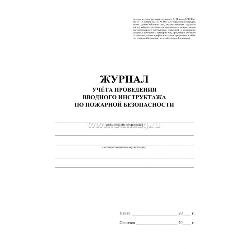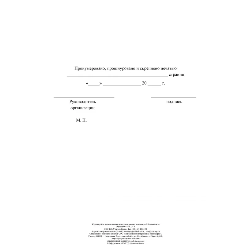 Журнал регистрации вводного противопожарного инструктажа, 24 листа, бумага, КЖ 1556