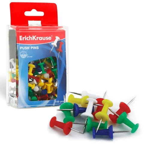 Кнопки для пробковых досок Erich Krause цветные, 100 шт/уп, 19749