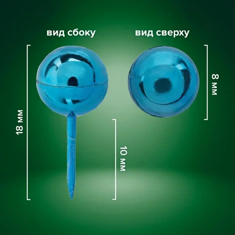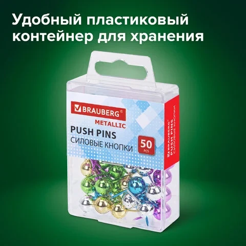 Кнопки для пробковых досок Brauberg Metallic 50шт/уп, 10мм