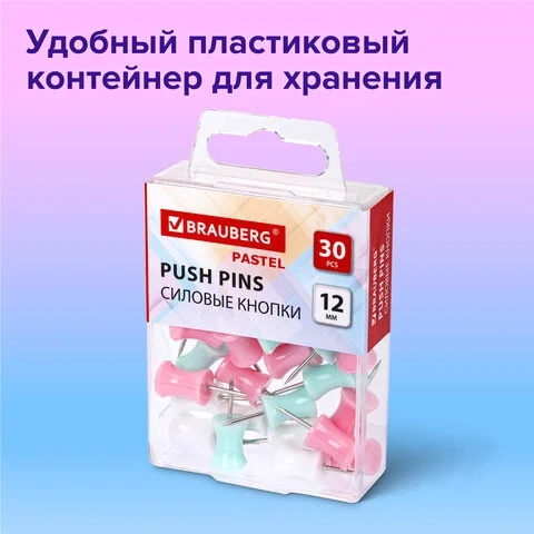 Кнопки для пробковых досок Brauberg Pastel 30шт/уп, 12мм