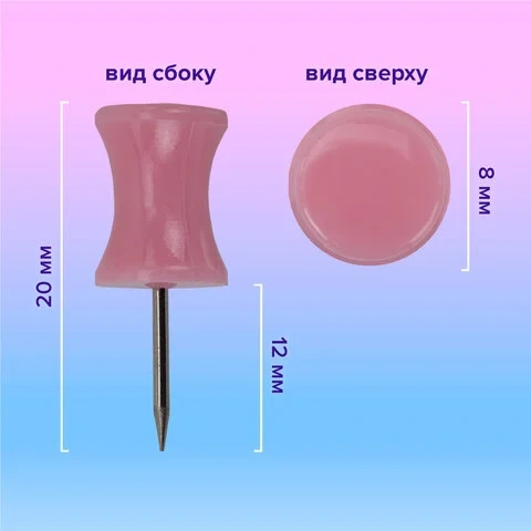 Кнопки с пластиковой шляпкой пастельных цветов и стальным острием длиной 12 мм.