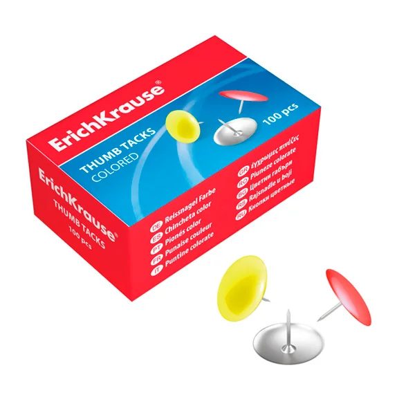 Кнопки канцелярские Erich Krause цветные, 100шт/уп, 24876