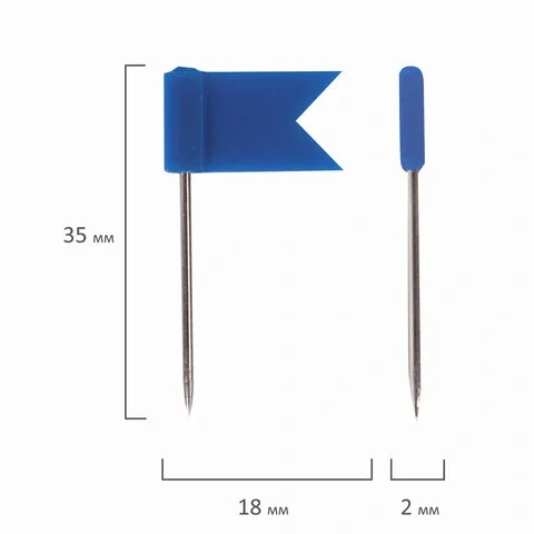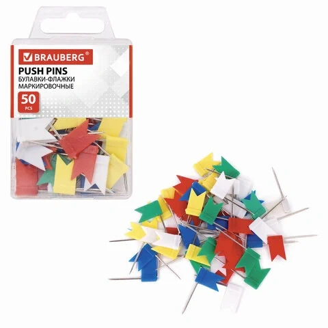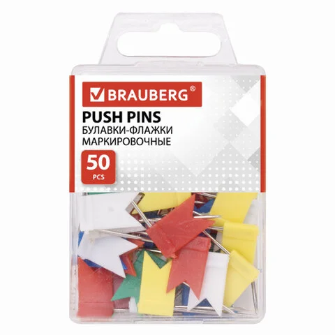 Кнопки для пробковых досок Brauberg цветные, 50 шт/уп, флажки, в пласт. коробке