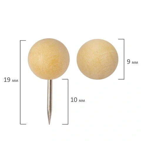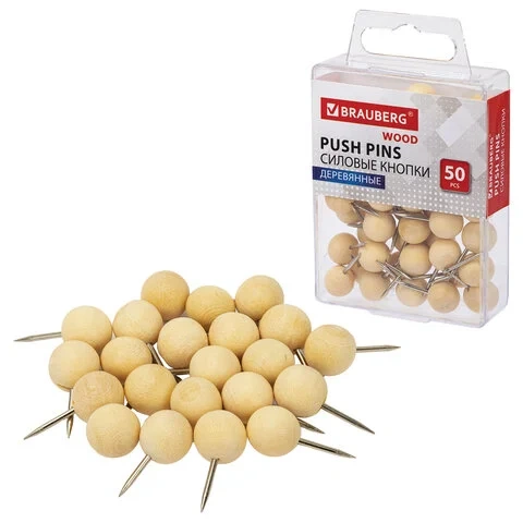 Кнопки для пробковых досок Brauberg Wood 50шт/уп, 10мм