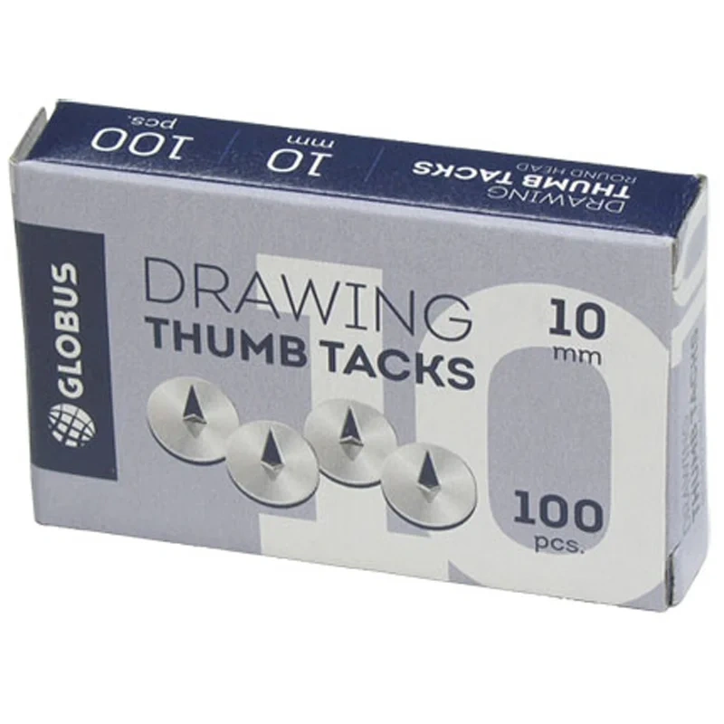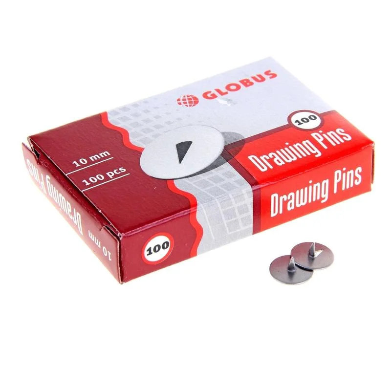 Кнопки канцелярские Глобус 10мм, 100шт/уп, металлические