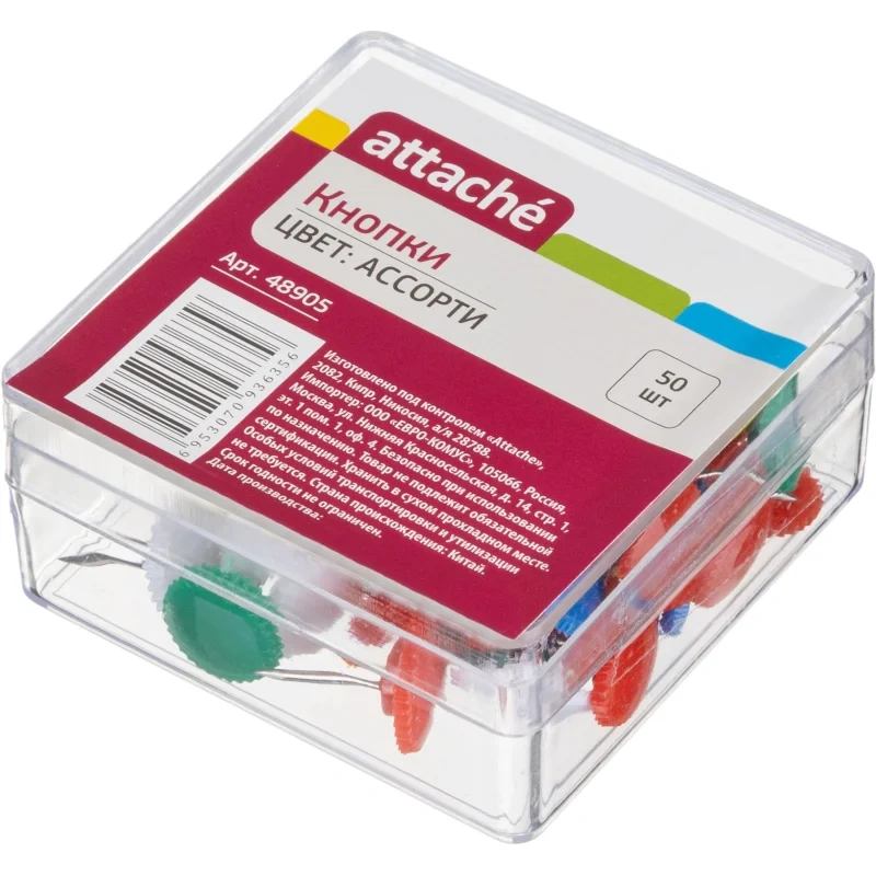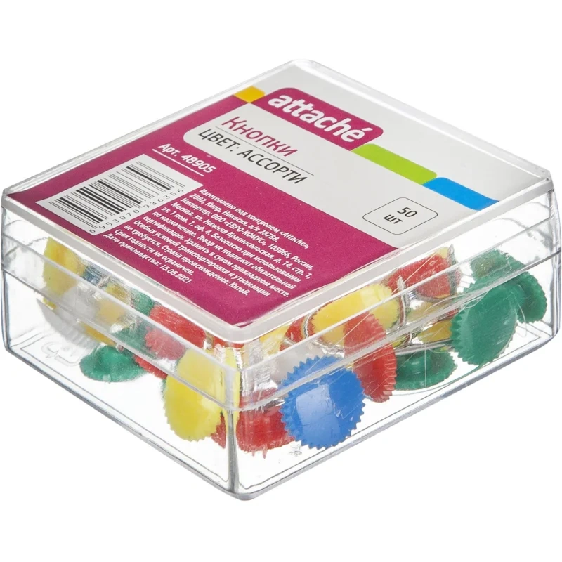 Кнопки канцелярские Attache цветные, 50шт/уп