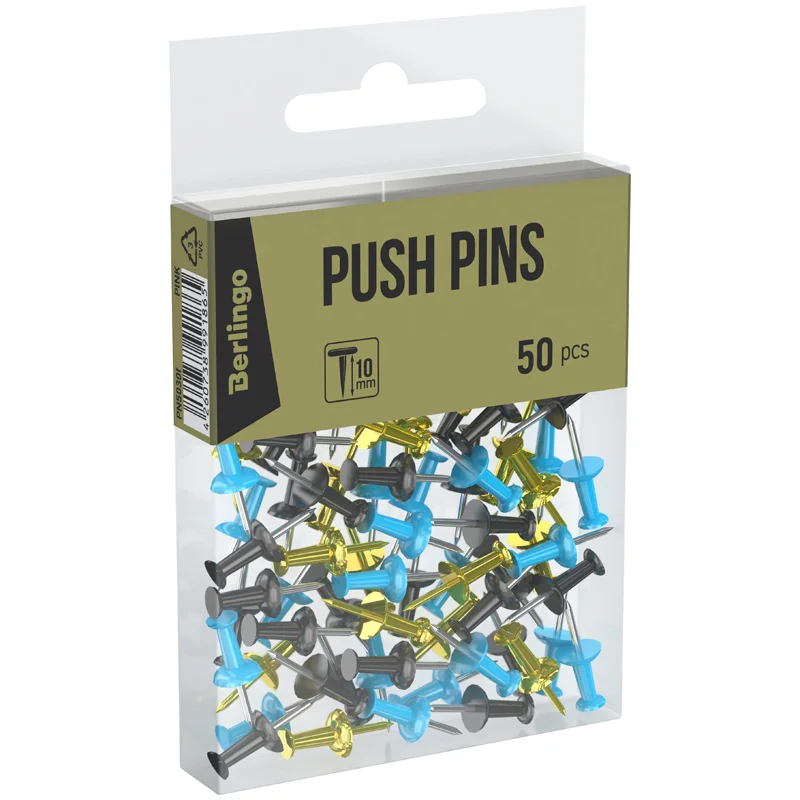 Кнопки для пробковых досок Berlingo цветные, 50 шт/уп, гвоздики