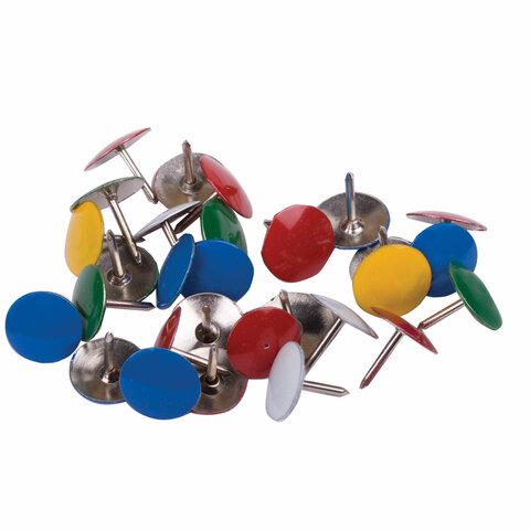 Кнопки канцелярские Brauberg 10мм, 100шт/уп, металл. цветные