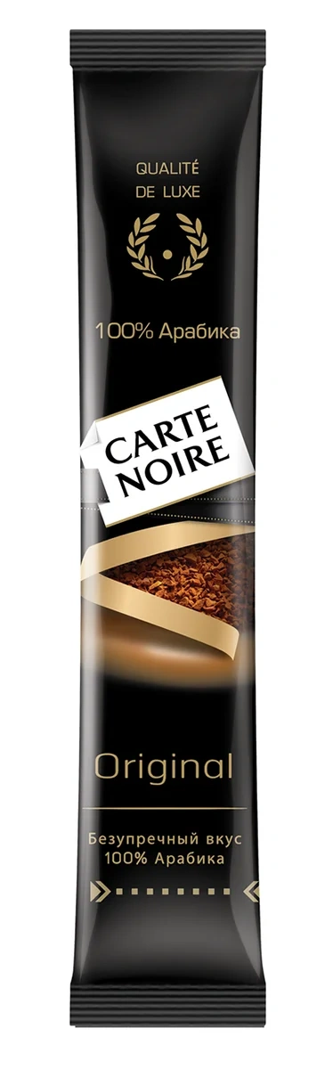 Достигнув совершенства в кофейном мастерстве, Carte Noire создал безупречный стандарт качества кофе - Carte Noire Original. Это настоящий кофейный шедевр, неподвластный времени. Carte Noire Original создан из специально отобранных зерен 100% арабики из Латинской Америки и Азии. Его безупречный интенсивный вкус с выразительными цитрусовыми нотками и несравненный аромат превратят каждый глоток кофе в момент изысканного наслаждения. Carte Noire Original 0 воплощение французских традиций в великолепном насыщенном вкусе кофе. Создан по уникальной инновационной технологии Огонь и лед, чтобы вы могли насладиться истинным вкусом и ароматом кофе Арабика. На самом пике обжарки, когда кофейное зерно максимально раскрывает свой потенциал, поток ледяного воздуха останавливает процесс и резко остужает горячие зернышки. Благодаря этому, они сохраняют всю свою глубину и насыщенность. Растворимый кофе рекомендуется заваривать горячей, но не кипящей водой. Стильная дизайнерская упаковка на 1 порцию.