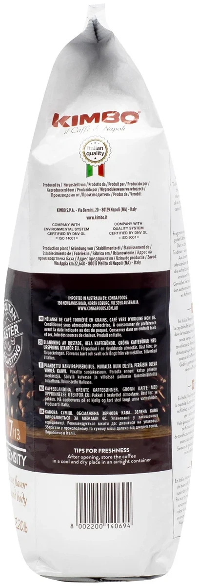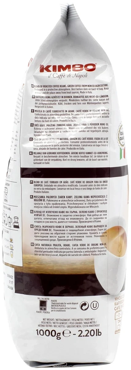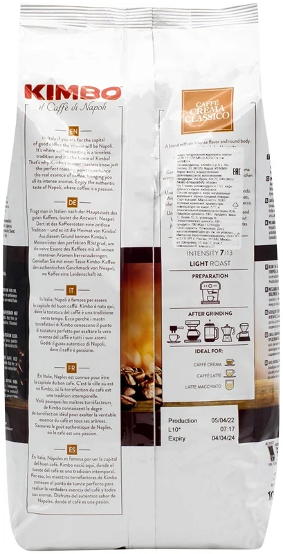 Кофе Kimbo Дольче крем зерновой, 1 кг – прекрасное начало нового дня. Благодаря купажу из арабики и робусты создается насыщенный приятный вкус, с нотками шоколада и карамели. Аромат притягательный и ненавязчивый, слегка сладковатый. Средняя обжарка дает возможность насладиться приятным напитком без излишней горчинки. Бленд идеально подходит для приготовления эспрессо, в нем полностью раскрываются все вкусовые оттенки. Пенная шапка получается правильной формы и консистенции, не сильно плотная, но и не исчезает на глазах. Идеально подобранное сочетание кофейных зерен – это залог успеха, ведь нужно оттенить горечь робусты сладкими тонами арабики.