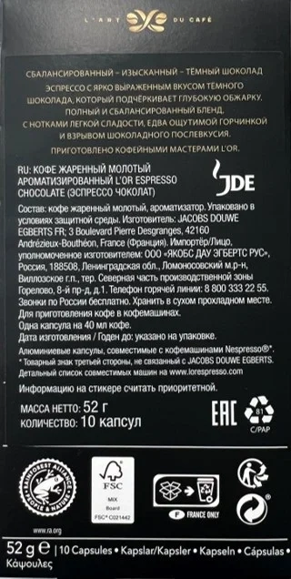 Кофе L’or Espresso Chocolate капсулы (5.2г x 10шт), 52г