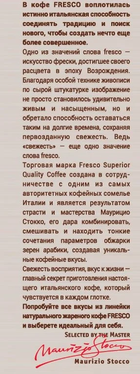 Приготовлен из отобранного мастером особого сорта арабики ирга чеффе. Смесь сортов арабики из Южной Америки средней обжарки и тонкого помола. Напиток обладает насыщенным вкусом с небольшой кислинкой. Это идеальный напиток для тех, кто предпочитает классический сбалансированный кофе.