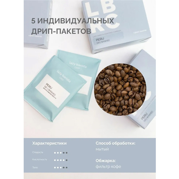 Кофе молотый Lazy Barista Peru, в дрип-пакете, 5шт