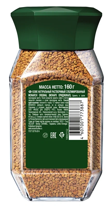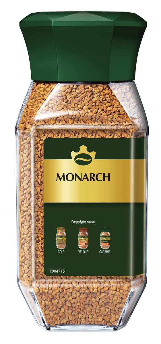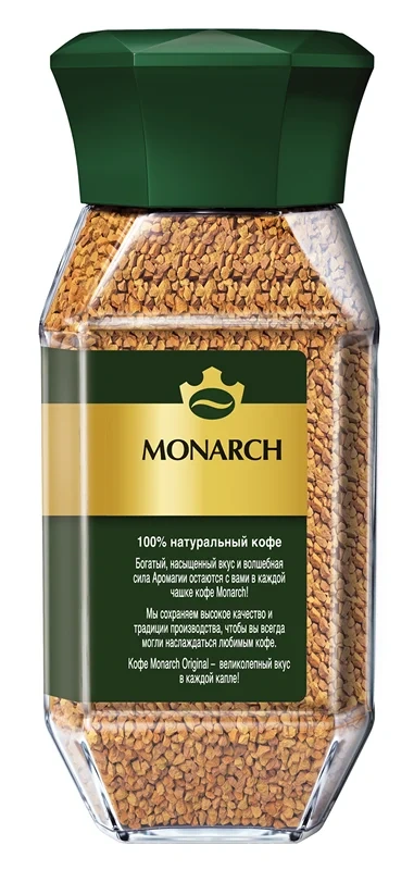 Богатый, насыщенный вкус и волшебная сила Аромагии остаются с вами в каждой чашке кофе Monarch! Мы сохраняем высокое качество и традиции производства, чтобы вы всегда могли наслаждаться любимым кофе. Кофе Monarch Original - великолепный вкус в каждой капле! Изготовлен по особой технологии молотый в растворимом. Каждая растворимая Miligrano-гранула содержит 100% молотую Арабику ультратонкого помола. Наши эксперты сохранили особую технологию производства, благодаря которой молотый кофе, заключенный внутри каждой гранулы, дарит свой насыщенный вкус и аромат.